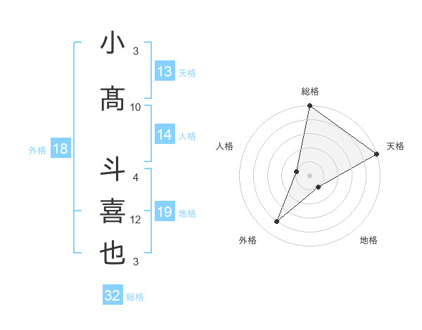 小髙 斗喜也さんの天格は13画の5点!