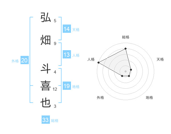弘畑 斗喜也さんを姓名の画数から五運を鑑定