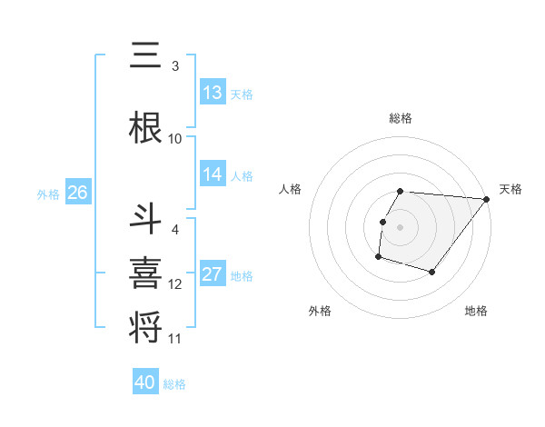 三根 斗喜将さんを姓名の画数から五運を鑑定
