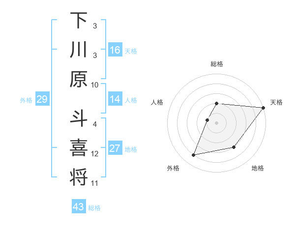下川原 斗喜将さんを姓名の画数から五運を鑑定