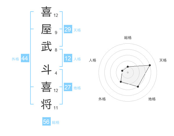 喜屋武 斗喜将さんの天格は29画の4点!