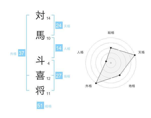 対馬 斗喜将さんの総格は51画の3点!