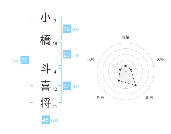 小橋 斗喜将さんを姓名の画数から五運を鑑定