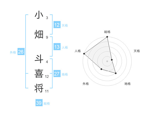 小畑 斗喜将さんの総格は39画の5点!