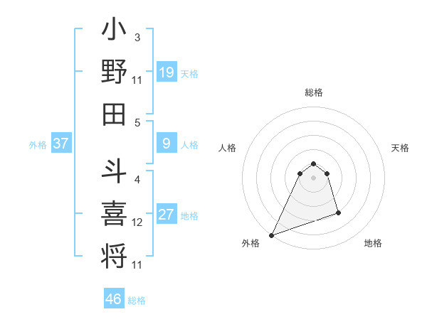 小野田 斗喜将さんの外格は37画の5点!