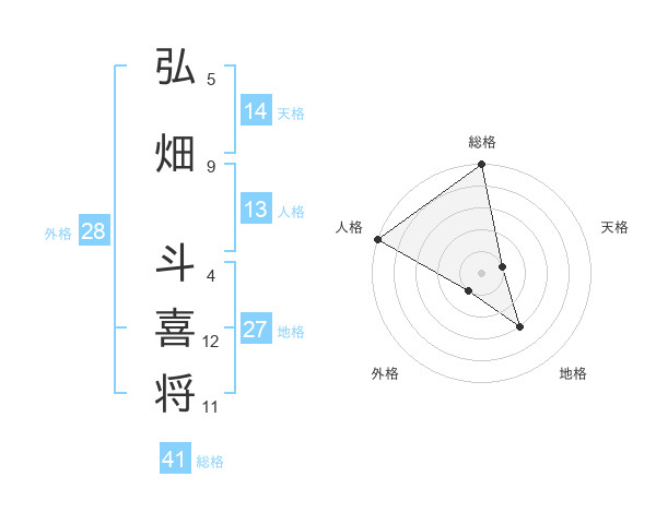 弘畑 斗喜将さんの総格は41画の5点!