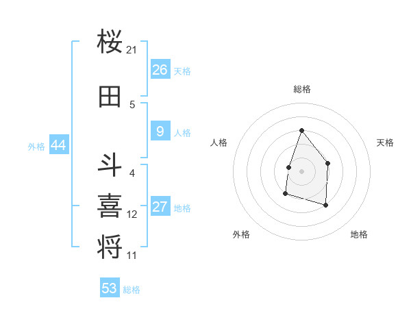 桜田 斗喜将さんの総格は53画の3点!
