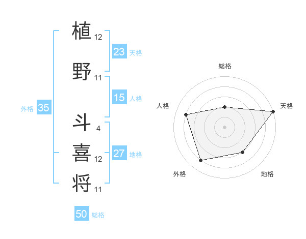 植野 斗喜将さんを姓名の画数から五運を鑑定