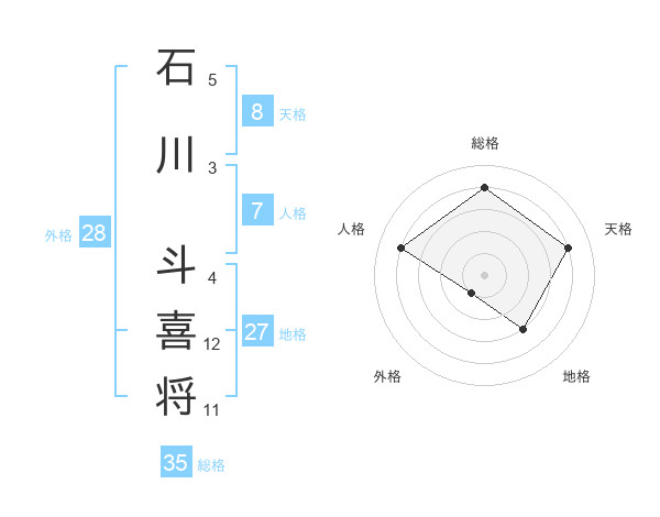 石川 斗喜将さんを姓名の画数から五運を鑑定