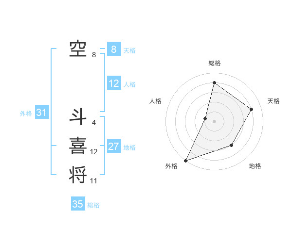 空 斗喜将さんの総格は35画の4点!