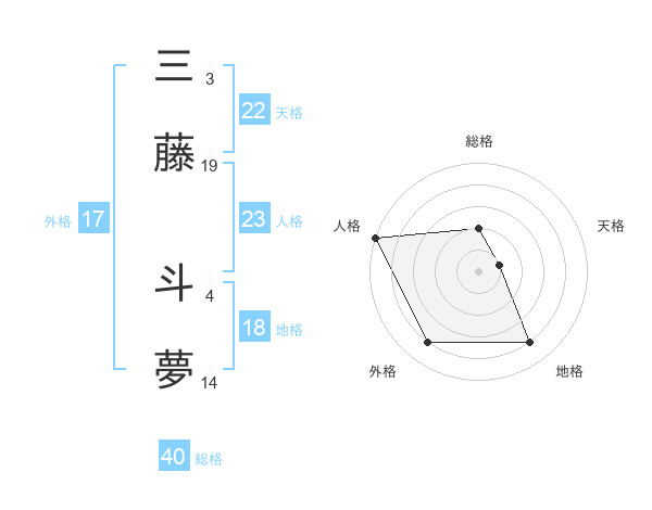 三藤 斗夢さんを姓名の画数から五運を鑑定