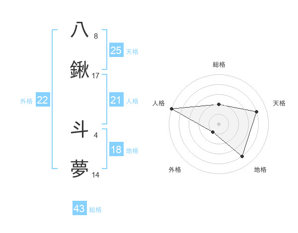 八鍬 斗夢さんの外格は22画の1点!