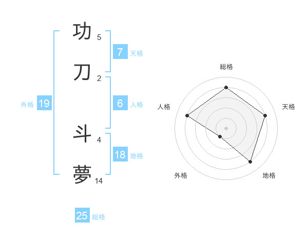 功刀 斗夢さんを姓名の画数から五運を鑑定