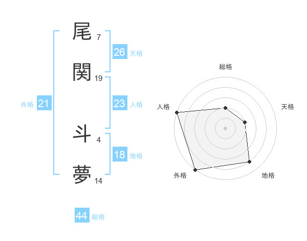 尾関 斗夢さんを姓名の画数から五運を鑑定
