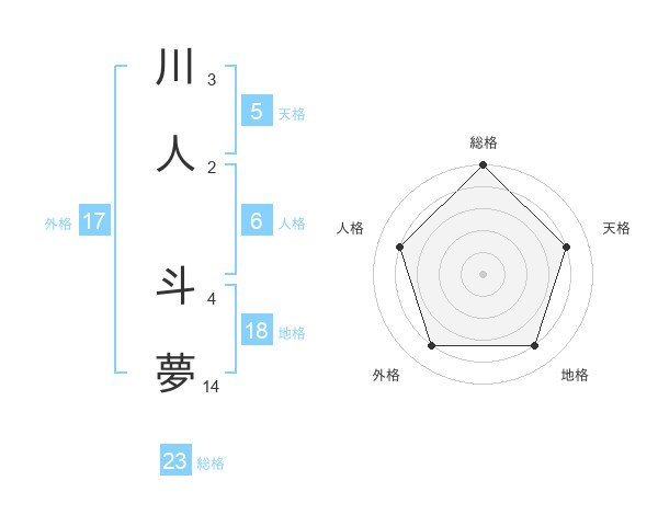 川人 斗夢さんの総格は23画の5点!