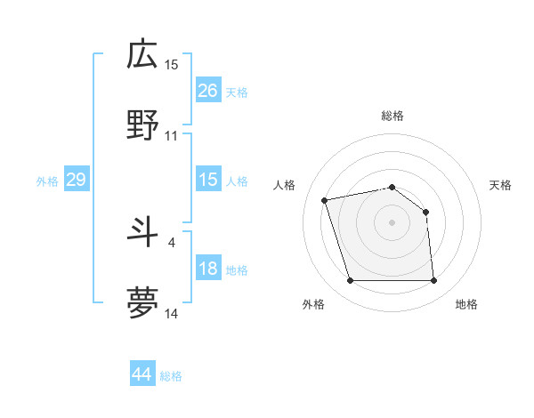 広野 斗夢さんの総格は44画の2点!