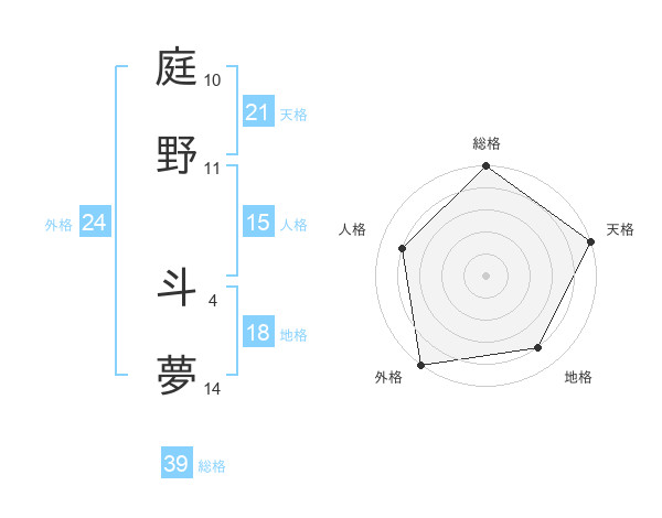 庭野 斗夢さんの総格は39画の5点!