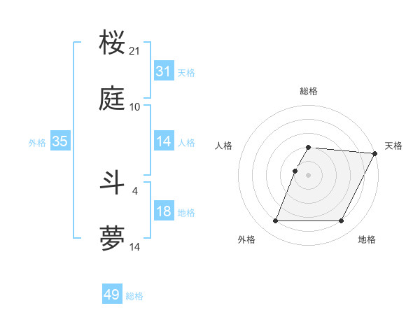 桜庭 斗夢さんを姓名の画数から五運を鑑定