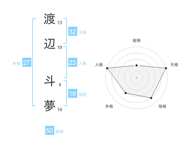 渡辺 斗夢さんの天格は32画の5点!