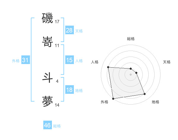 磯嵜 斗夢さんの総格は46画の1点!