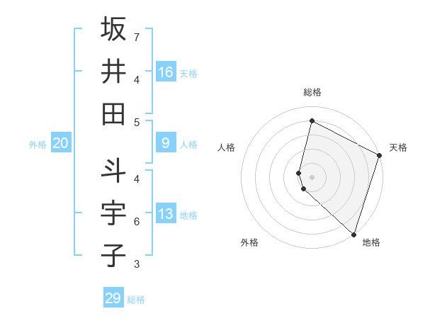 坂井田 斗宇子さんを姓名の画数から五運を鑑定