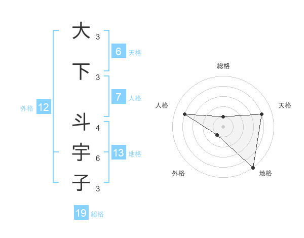 大下 斗宇子さんを姓名の画数から五運を鑑定