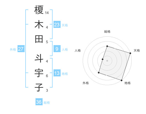 榎木田 斗宇子さんを姓名の画数から五運を鑑定