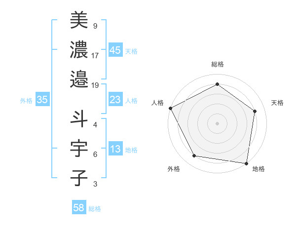 美濃邉 斗宇子さんを姓名の画数から五運を鑑定