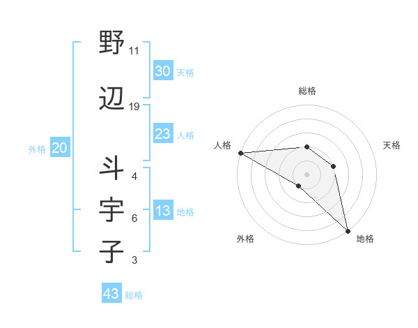 野辺 斗宇子さんを姓名の画数から五運を鑑定