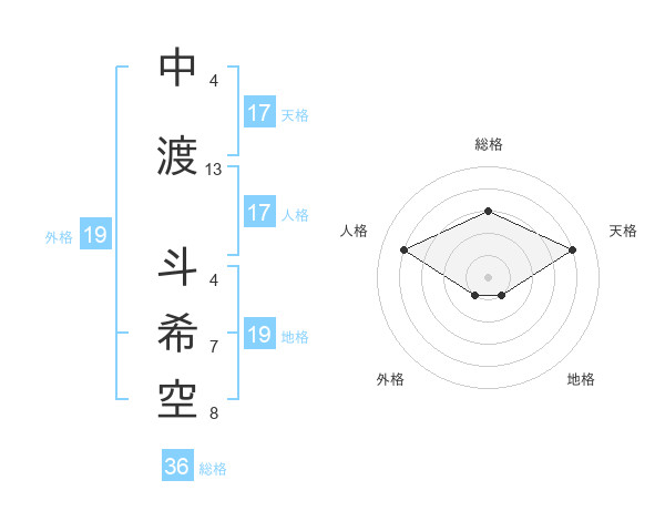 中渡 斗希空さんの天格は17画の4点!