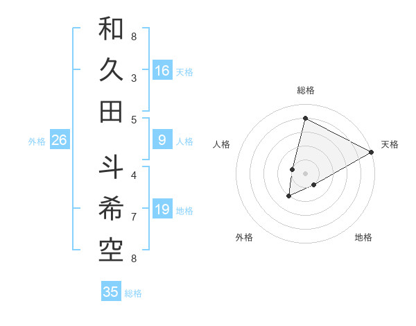 和久田 斗希空さんを姓名の画数から五運を鑑定
