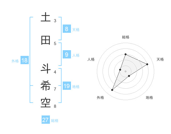 土田 斗希空さんを姓名の画数から五運を鑑定