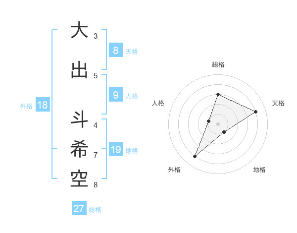 大出 斗希空さんを姓名の画数から五運を鑑定