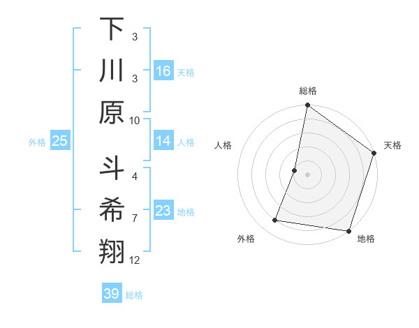 下川原 斗希翔さんを姓名の画数から五運を鑑定