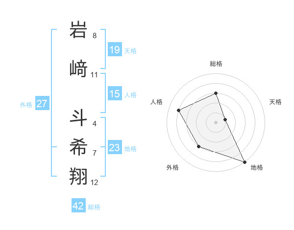 岩﨑 斗希翔さんの総格は42画の3点!