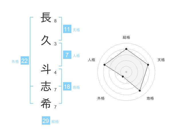 長久 斗志希さんを姓名の画数から五運を鑑定