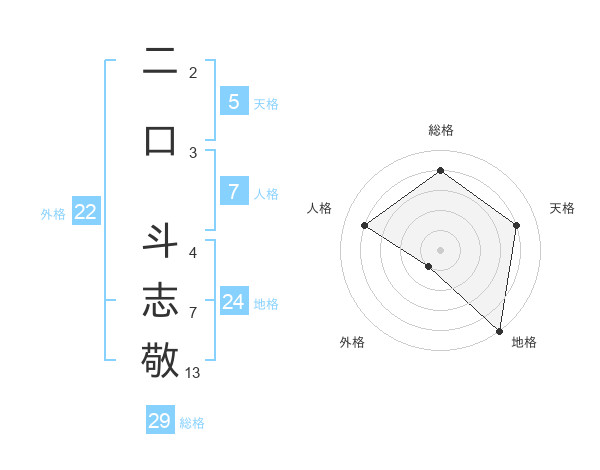 二口 斗志敬さんを姓名の画数から五運を鑑定