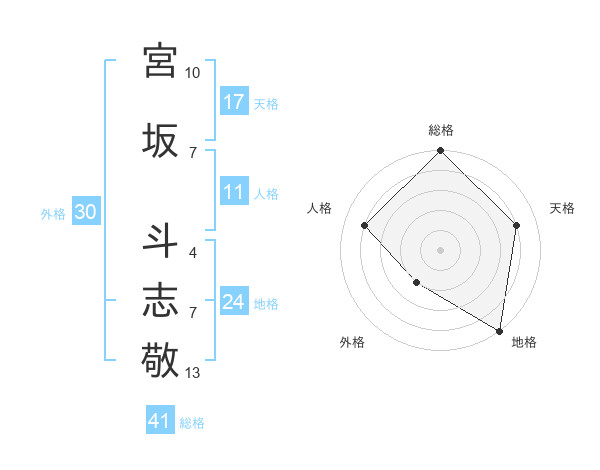 宮坂 斗志敬さんの天格は17画の4点!