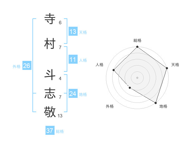 寺村 斗志敬さんを姓名の画数から五運を鑑定