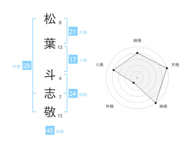 松葉 斗志敬さんの天格は21画の5点!