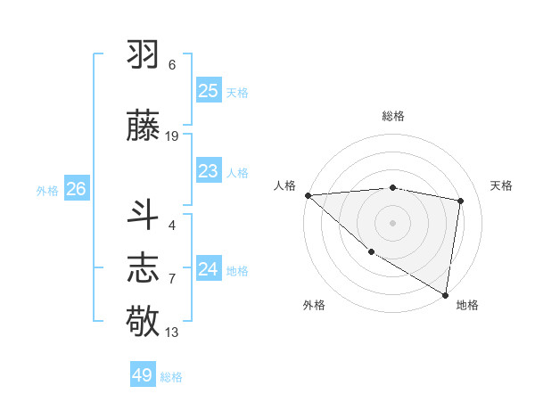 羽藤 斗志敬さんを姓名の画数から五運を鑑定