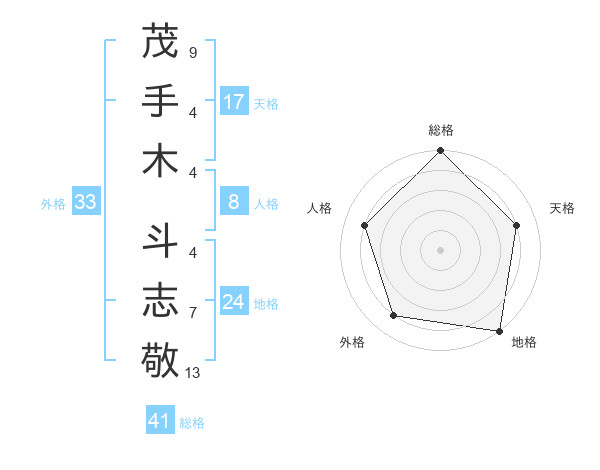 茂手木 斗志敬さんを姓名の画数から五運を鑑定
