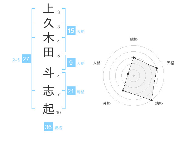 上久木田 斗志起さんを姓名の画数から五運を鑑定