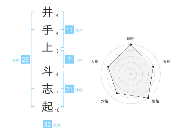 井手上 斗志起さんを姓名の画数から五運を鑑定