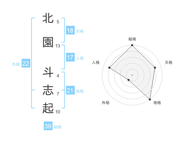 北園 斗志起さんを姓名の画数から五運を鑑定