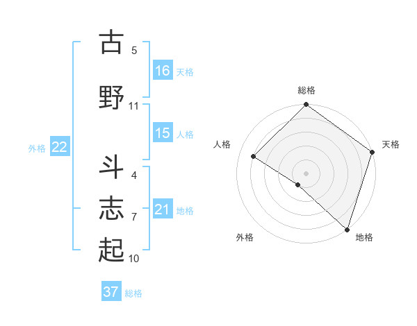 古野 斗志起さんを姓名の画数から五運を鑑定