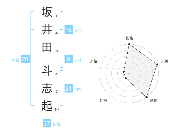 坂井田 斗志起さんの総格は37画の5点!