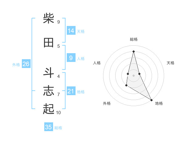 柴田 斗志起さんを姓名の画数から五運を鑑定