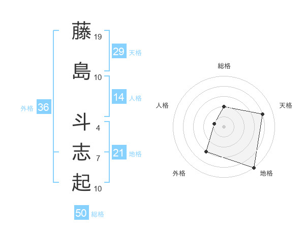 藤島 斗志起さんの総格は50画の2点!