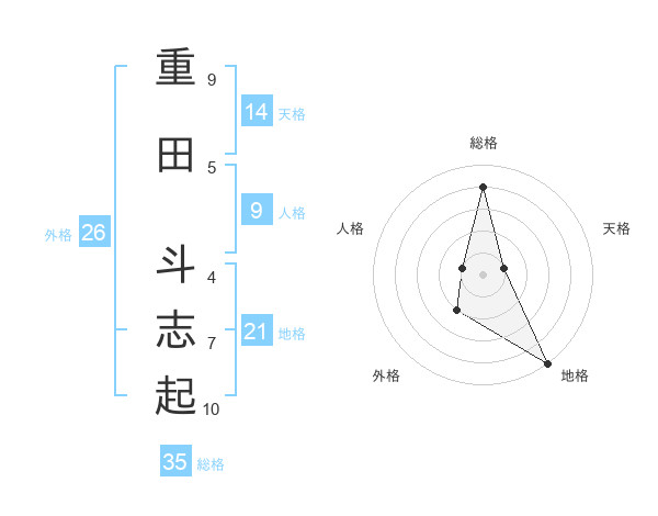 重田 斗志起さんを姓名の画数から五運を鑑定
